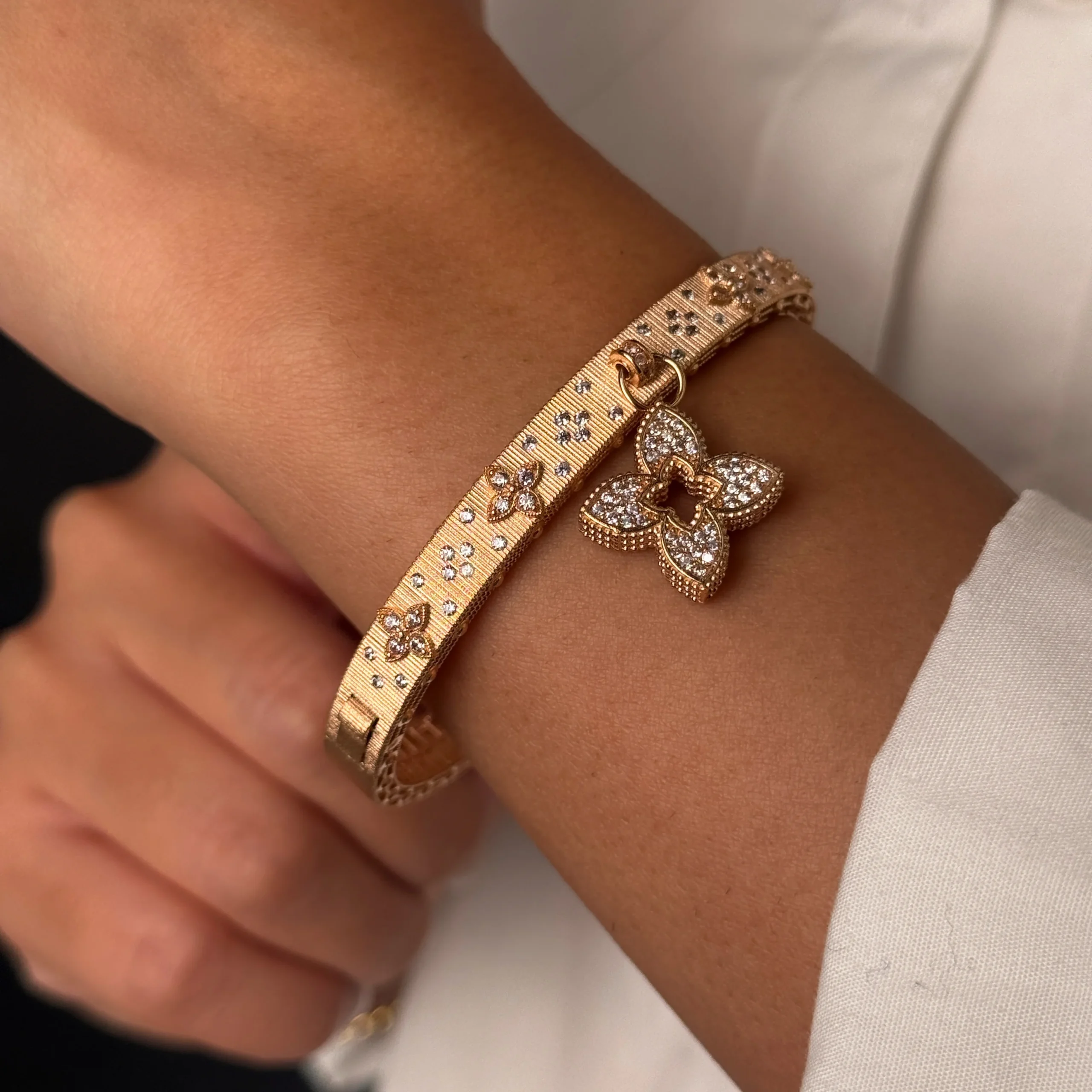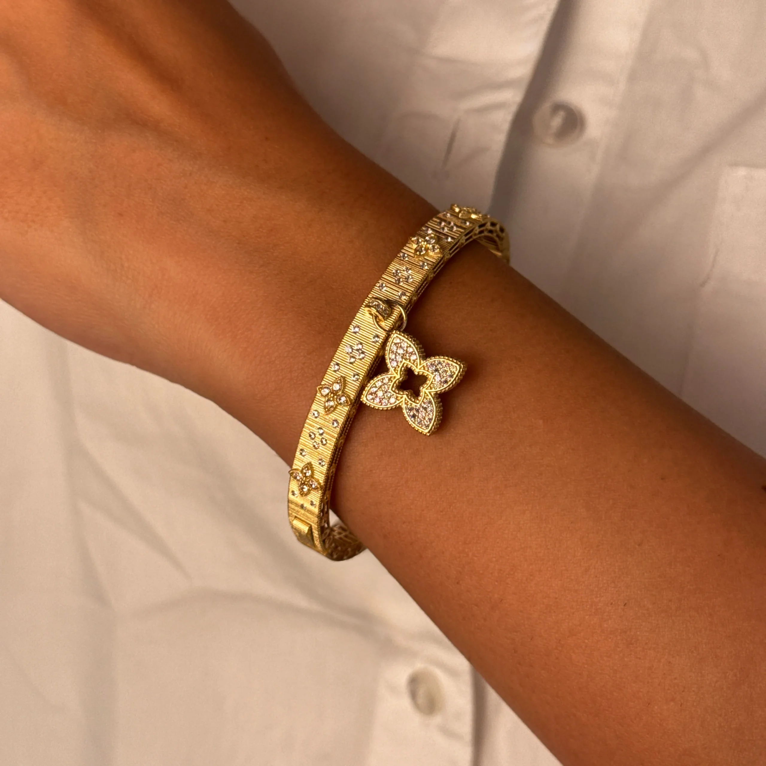 دستبند النگویی ونکلیف در سه رنگ طلایی، نقره ای و رزگلد موجود است.