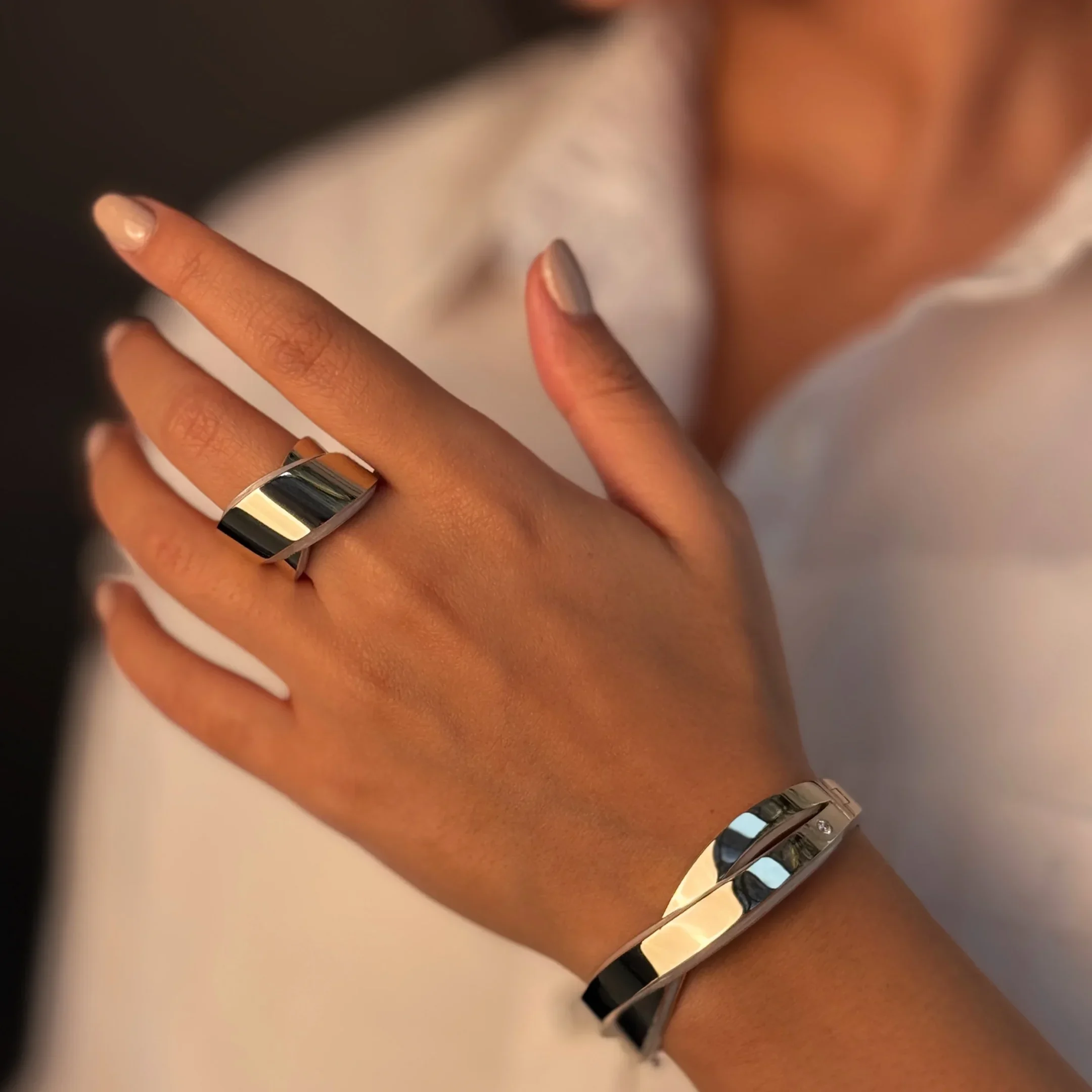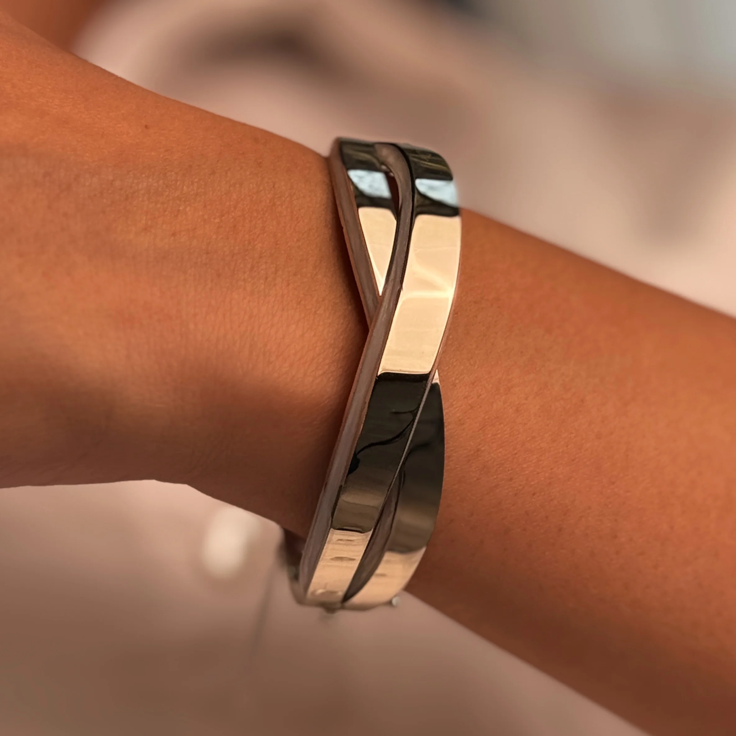 این دستبند طلا 18 عیار، طراحی جدید و منحصر بفردی دارد. رنگ سیلور آن باعث شده تا بسیار مدرن و در عین حال شکیل به نظر برسد؛ در کنار آن یک لایه سفید صدفی کار شده است که ظاهر آن را خاص تر میکند.