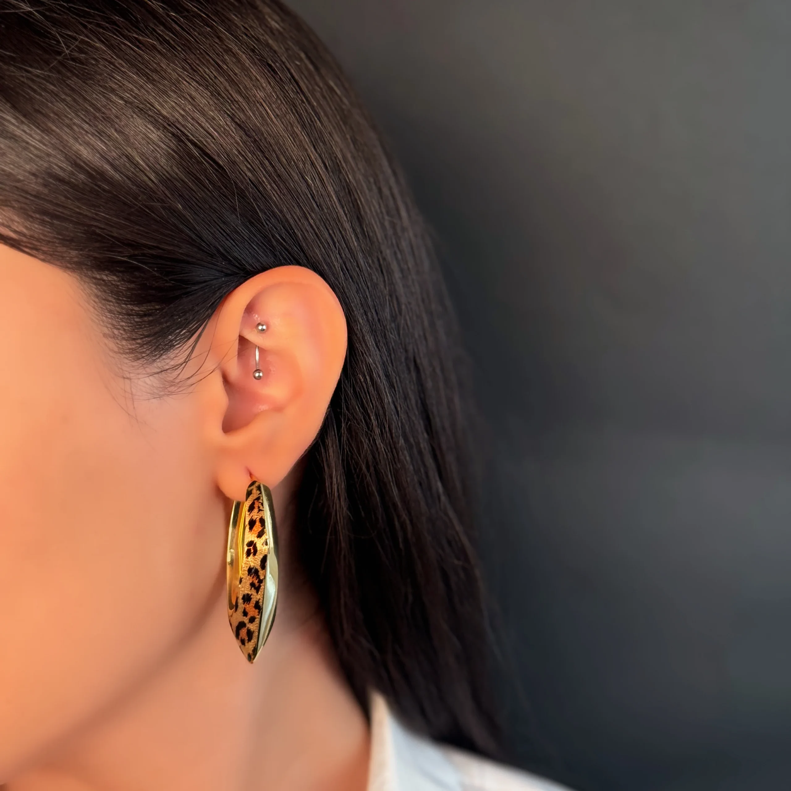 گوشواره الکتروفرم پلنگی مدل لوزی که یک طرف آن ساده و یک طرف پلنگی هست یکی از لوکس ترین طرح های گوشواره به شمار میرود.