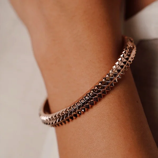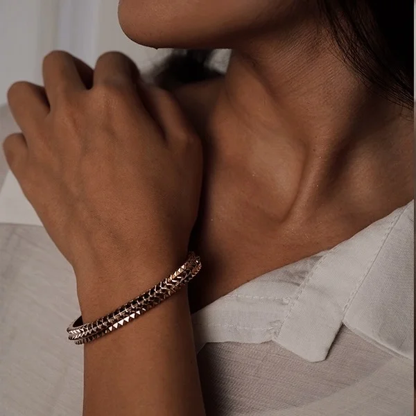 طراحی منحصربهفرد النگو بولگاری باعث میشود در هر جمعی بدرخشید و مورد توجه قرار بگیرید. این کار حسی از خاص و لوکس بودن را منتقل میکند.